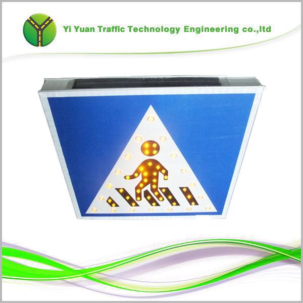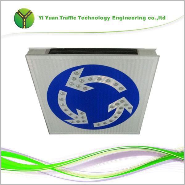 太陽(yáng)能標(biāo)志牌是交通標(biāo)志牌的一種,由標(biāo)志面、標(biāo)志底板、太陽(yáng)能電池板、控制器、發(fā)光單元(LED)組成,是用文字與圖案?jìng)鬟f警告、禁令、指示信息給司機(jī)和行人,用以管理道路交通的安全設(shè)施。該產(chǎn)品在普通逆反射反光交通標(biāo)志的基礎(chǔ)上,應(yīng)用了先進(jìn)的太陽(yáng)能蓄電池低壓供電技術(shù),采用LED發(fā)光管鑲鉗于標(biāo)志板,使得警告及車輛行駛的標(biāo)志,無(wú)論在白天或夜間均具備良好的辯認(rèn)視讀性能,尤其是在陰雨大霧等惡劣天氣環(huán)境下,更具備遠(yuǎn)距離光線穿透力。