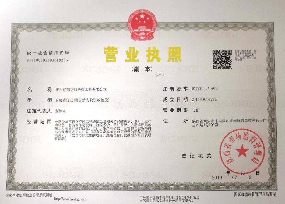 陜西交通安全設(shè)施營業(yè)執(zhí)照